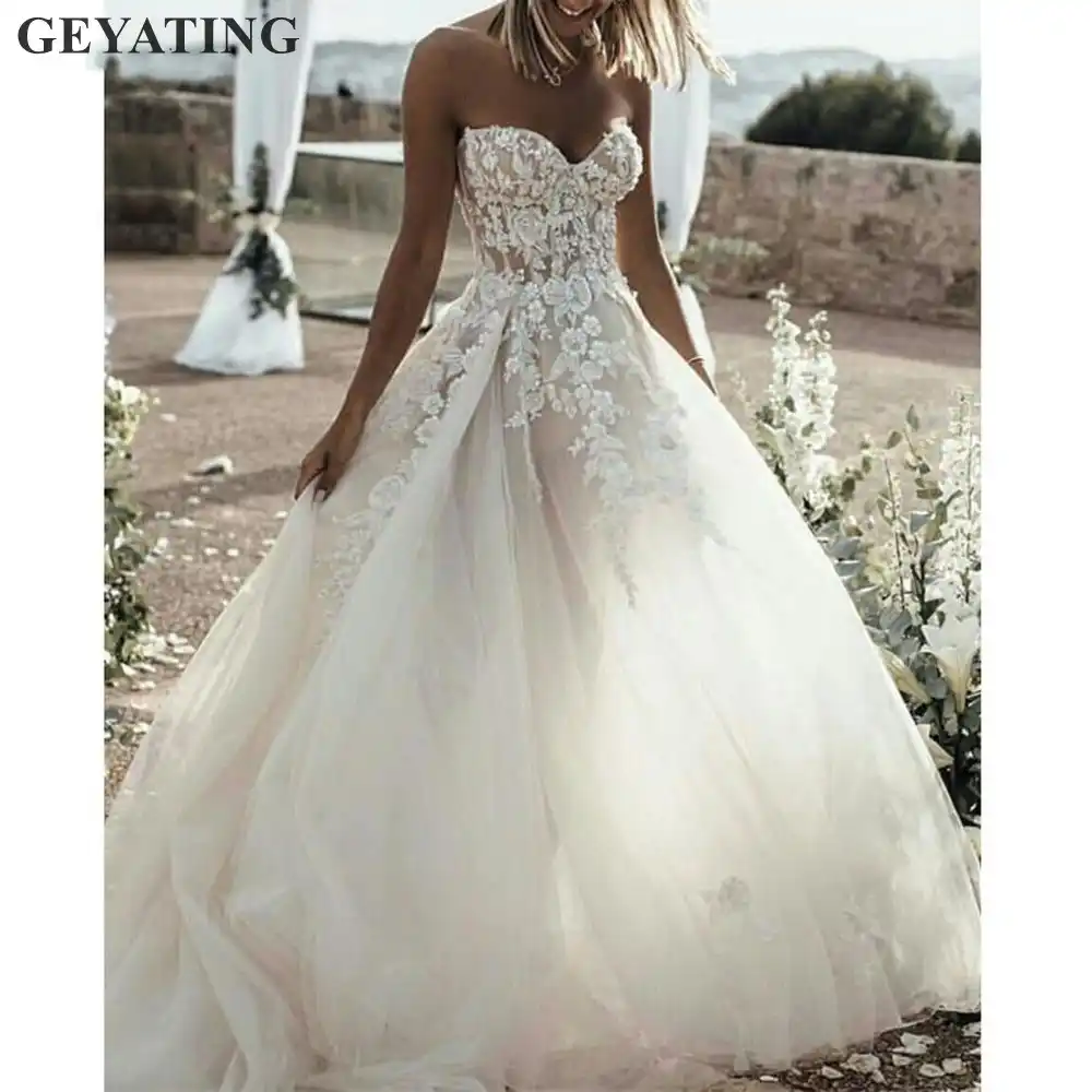 Wedding dress off the shoulder appliqued bride dresses a line elegant lace.